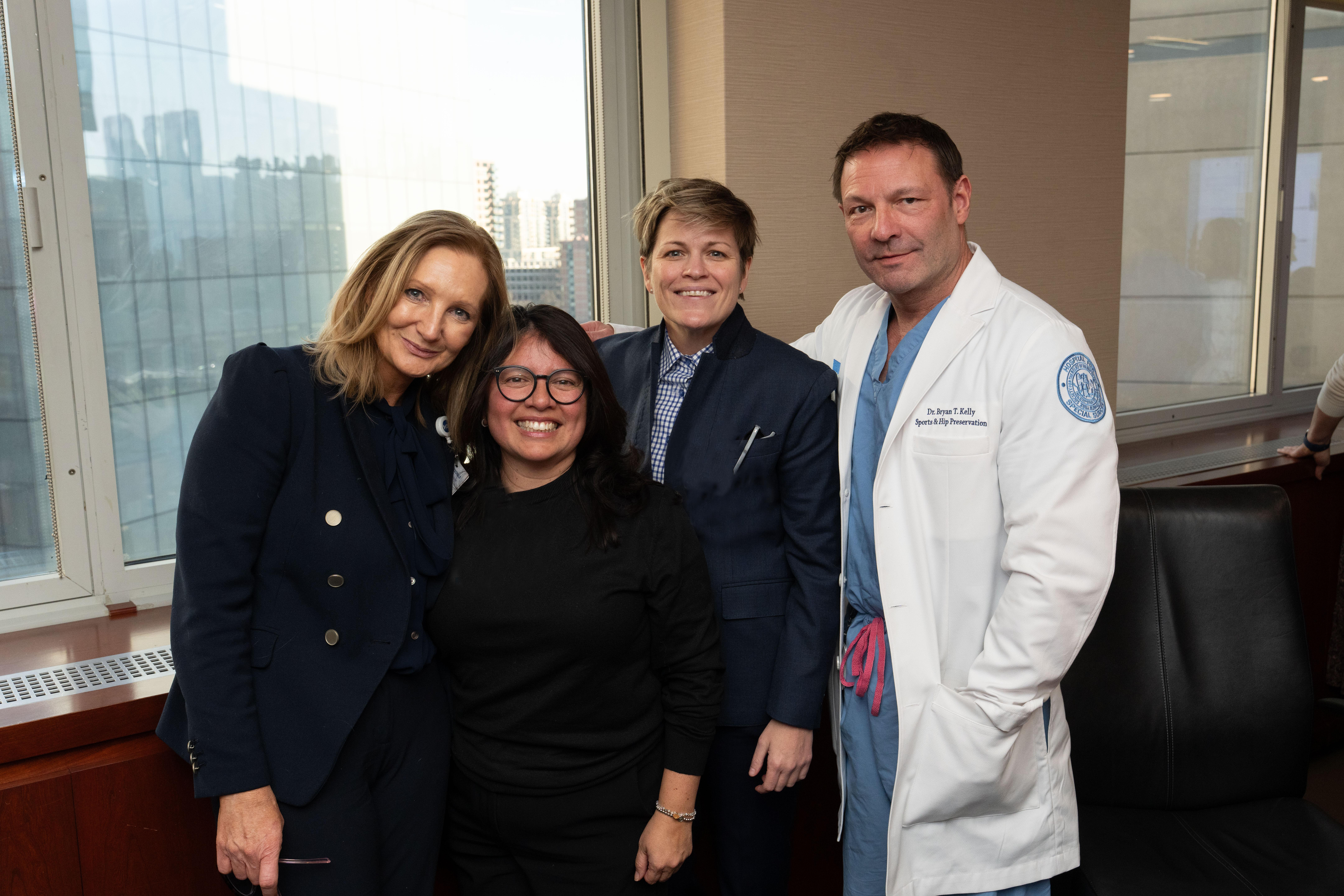 From Left to Right: Anne Marie McDonald, EDD RN FACHE CPHQ, Vice President, Quality and Performance Improvement at HSS, Ingrid Herrera-Capoziello, DNP, NPD-BC, NE-BC, AVP, Nursing Excellence & Professional Development at HSS, Mary Cassai, MPA, RN Executive Vice President & Chief Operating Officer at HSS, and Bryan Kelly, MD, HSS President, CEO and Surgeon-in-Chief Emeritus