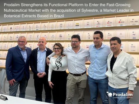 Winter Garden, Florida--(BUSINESS WIRE)--Prodalim, ein Weltmarktführer für Lösungen für Säfte und Spezialzutaten, hat heute die Übernahme von Sylvestre bekannt gegeben, einem führenden brasilianischen Hersteller von Botanicals und funktionellen Extrakten für den nutrazeutischen Sektor. Die derzeitigen Eigentümer und das Managementteam von Sylvestre behalten ihre Positionen im Unternehmen und werden dessen Integration in die Plattform von Prodalim unterstützen.