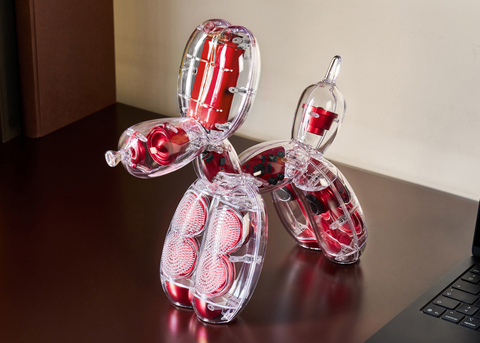 La trasformazione del Balloon Dog di Jeff Koons in un oggetto di design totalmente funzionale ha richiesto oltre 50.000 ore di sviluppo, in una collaborazione di ingegneria, innovazione e artigianato.